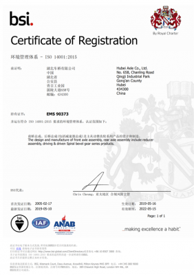 • 湖北車橋有限公司排污許可證申報已...